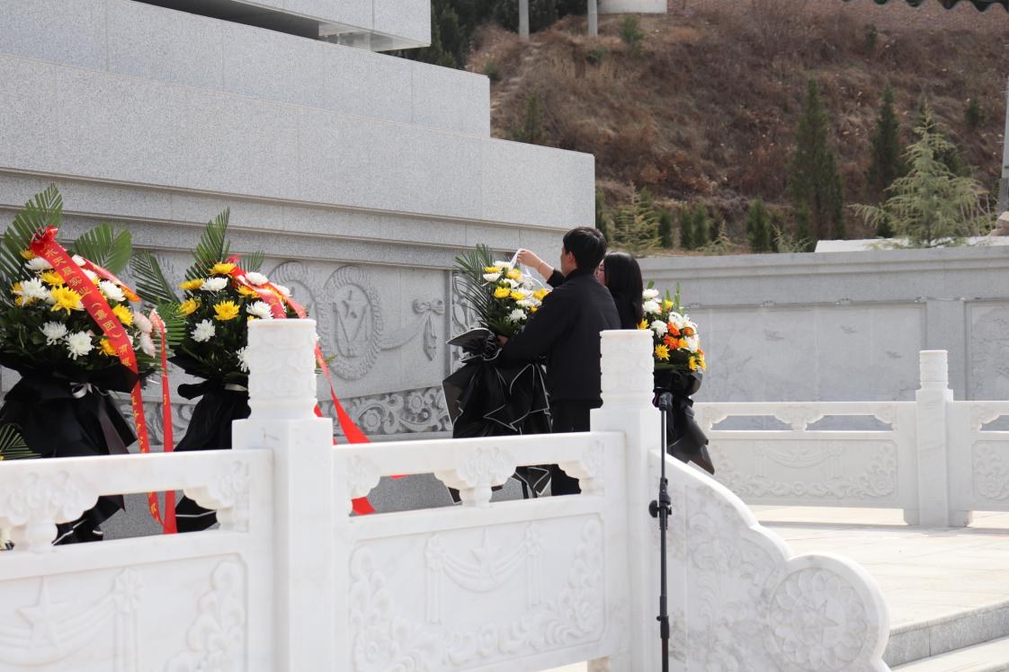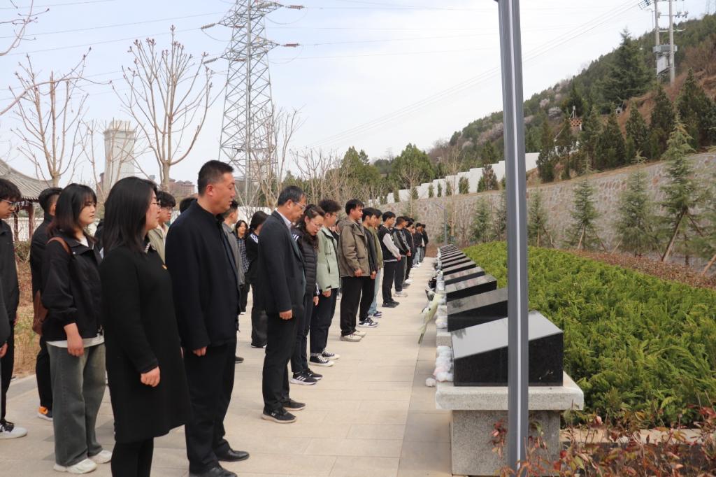 青山埋忠骨,鲜花寄哀思。在革命烈士墓前,全体师生党员整齐列队,肃立于纪念碑前,向革命烈士默哀致敬并敬献鲜花,深情缅怀革命先烈的丰功伟绩;伴随着深沉悠长的《献花曲》,两名党员代表缓步上前,向革命烈士敬献花篮。全体人员鞠躬默哀,向为民族独立、人民解放和国家富强献出生命的英烈致以最深切的悼念。