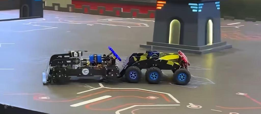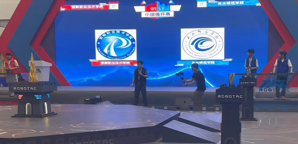 赛场上,天水师范大学代表队沉着应战,灵活运用既定策略,凭借默契的配合与精准的操作,在激烈对抗中成功完成关键区域占领、精准攻击与有效防御等任务,充分展现了团队在机器人技术与战术执行方面的专业素养,赢得了现场观众与裁判的一致认可。
