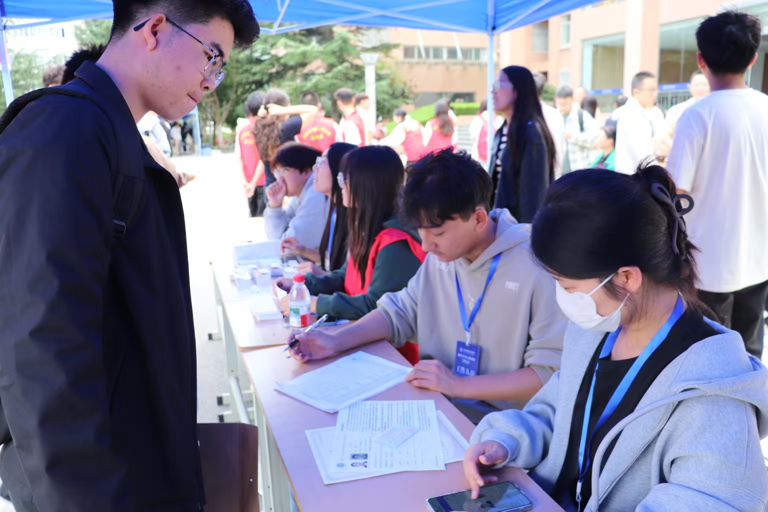迎新当天,校园内洋溢着青春与热情。志愿者身着统一服装,在校门口、报到点和宿舍楼等地忙碌穿梭,为新生及家长提供路线指引、行李搬运和问题解答等服务。各报到环节安排有序,信息核对、材料提交、校园卡领取和宿舍入住等流程高效顺畅,确保了新生顺利入学。