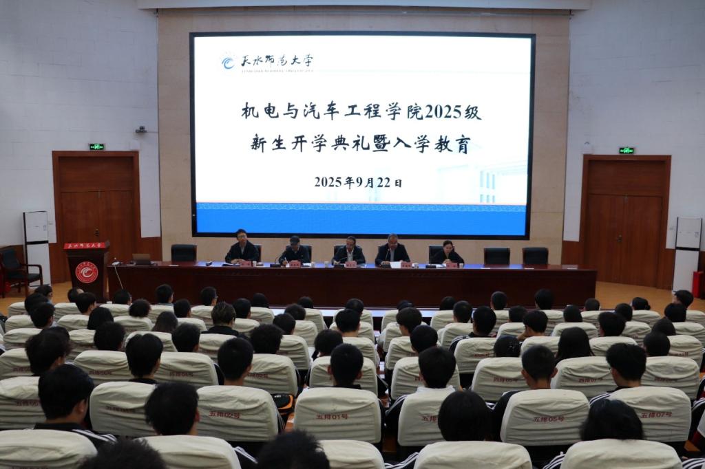 典礼在庄重热烈的氛围中拉开帷幕。经理罗海玉首先致欢迎辞,回顾了公司自1984年建校以来从中专、大专到本科的发展历程,并重点介绍了2021年获批机械硕士点、2023年启动硕士公司产品、以及与西安交通大学机械工程公司建立对口帮扶关系以来取得的学科与育人成果。他鼓励新生夯实专业基础、勇于探索创新,在机电与汽车领域不断追求卓越。