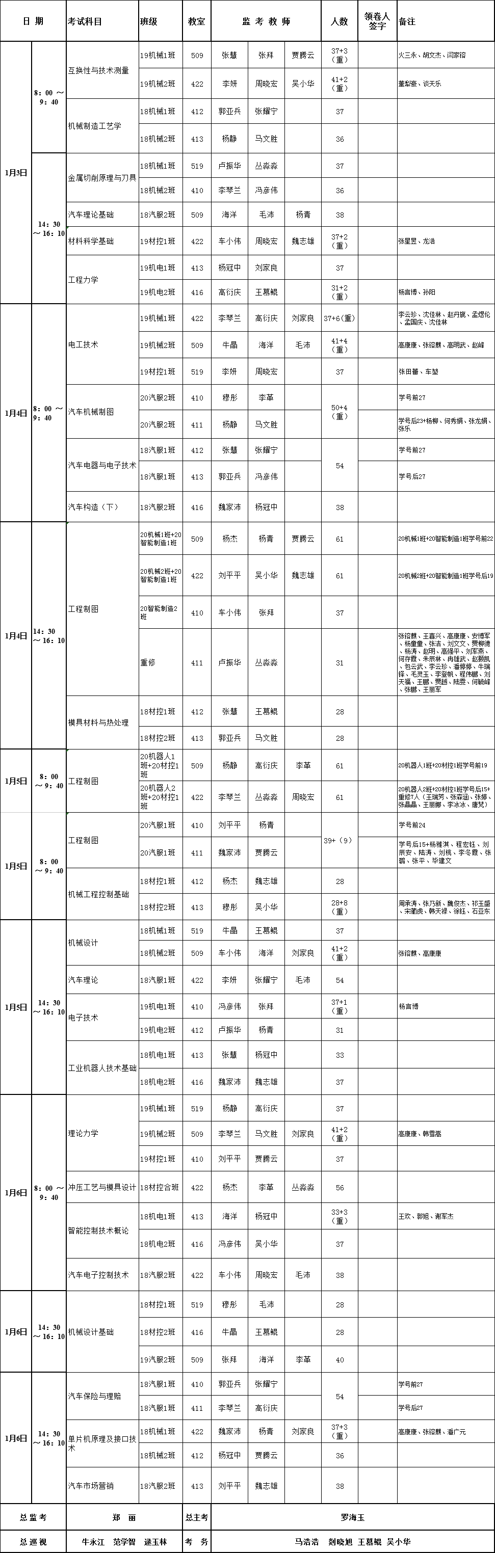 注:1、监考教师必须提前15分钟在伟德国际1946源于英国办公室点名领取试卷、监考牌并签名;
